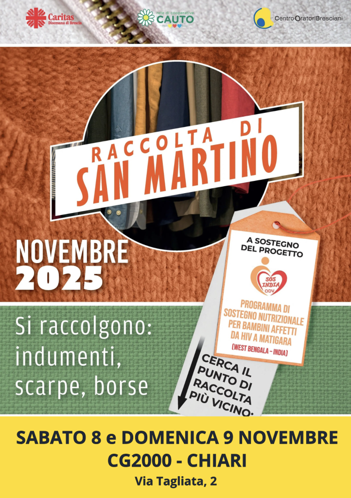 Torna anche quest’anno la consueta raccolta di indumenti, scarpe e borse nella ricorrenza di San Martino.